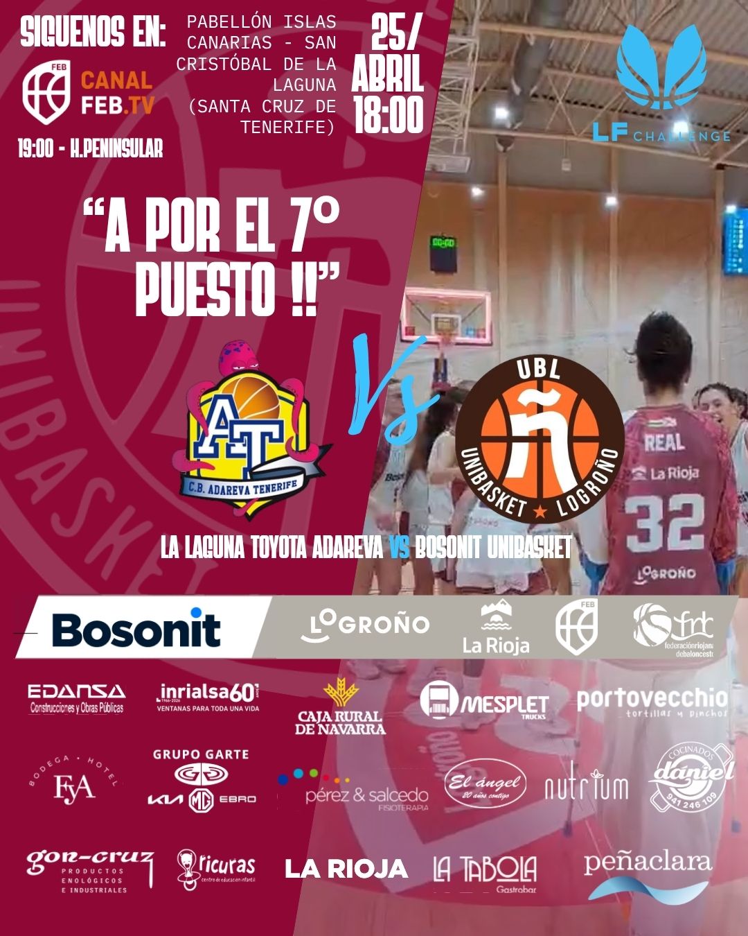 En el partido de ida frente a las canarias, disputado en Lobete, el Bosonit Unibasket se impuso por 65‑58, en un encuentro muy físico donde el equipo riojano supo imponer su ritmo y controlar los momentos decisivos. Sin embargo, Adareva llega a esta última jornada con argumentos de sobra para exigir la mejor versión del Bosonit. El conjunto tinerfeño destaca por el talento ofensivo de Forsyth, una de las máximas anotadoras de la liga; la amenaza exterior de Gómez Fernández; la versatilidad de Stevanovic, capaz de dominar desde múltiples posiciones; la energía interior de Soler Suárez; y la capacidad de Luque Caballero para generar desde el bote y el tiro. Un equipo intenso, con rebote poderoso y múltiples focos de anotación que obligarán a Unibasket a mantener la concentración durante los 40 minutos.